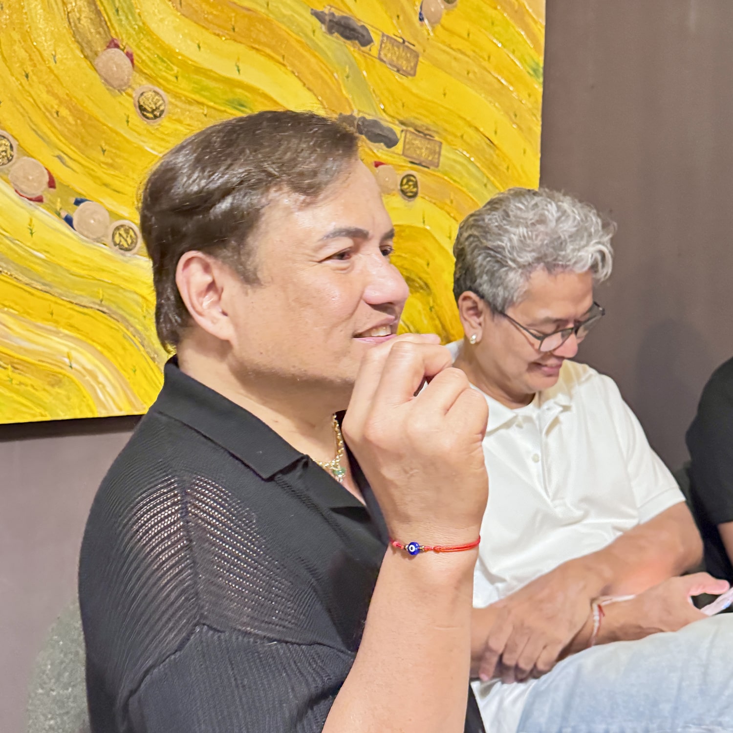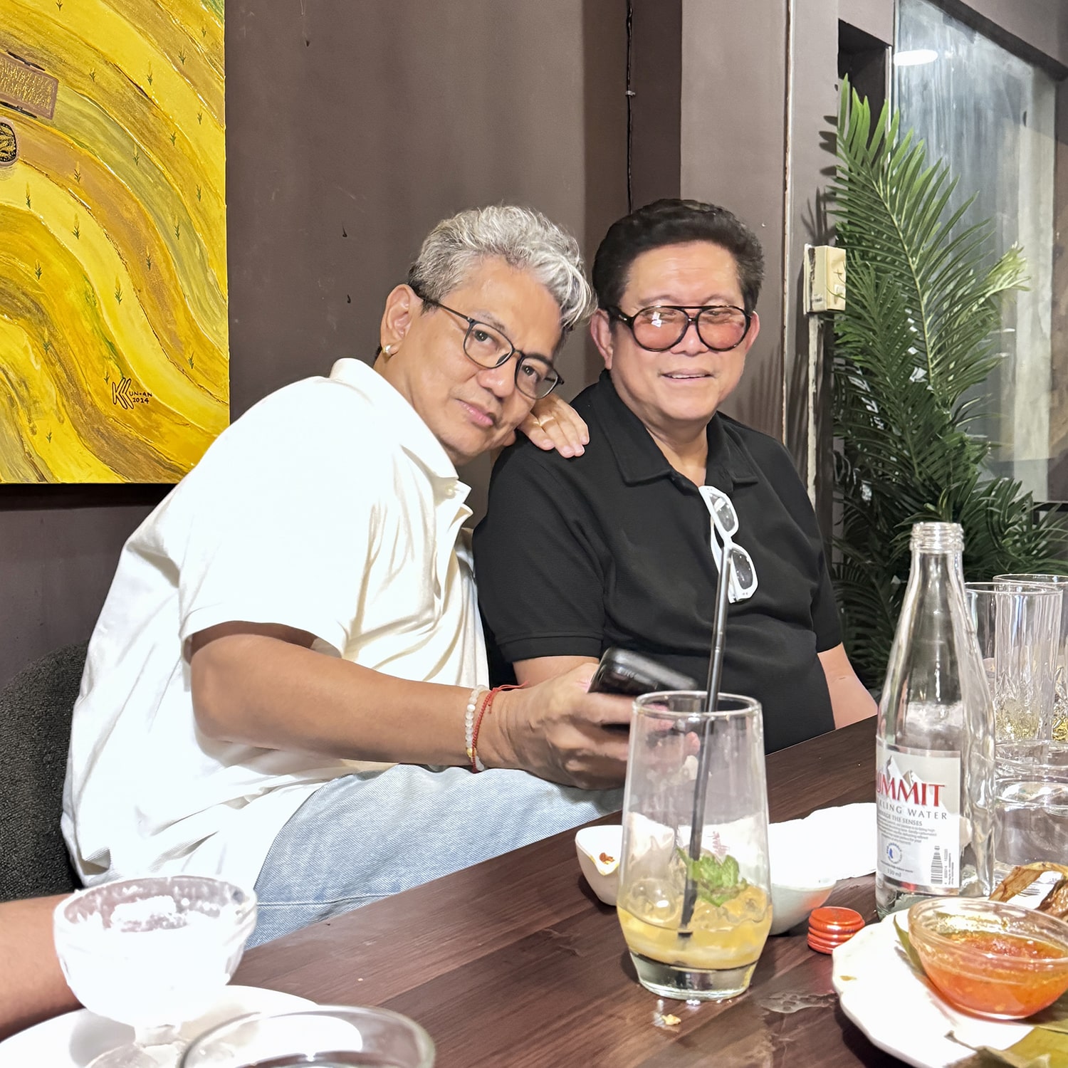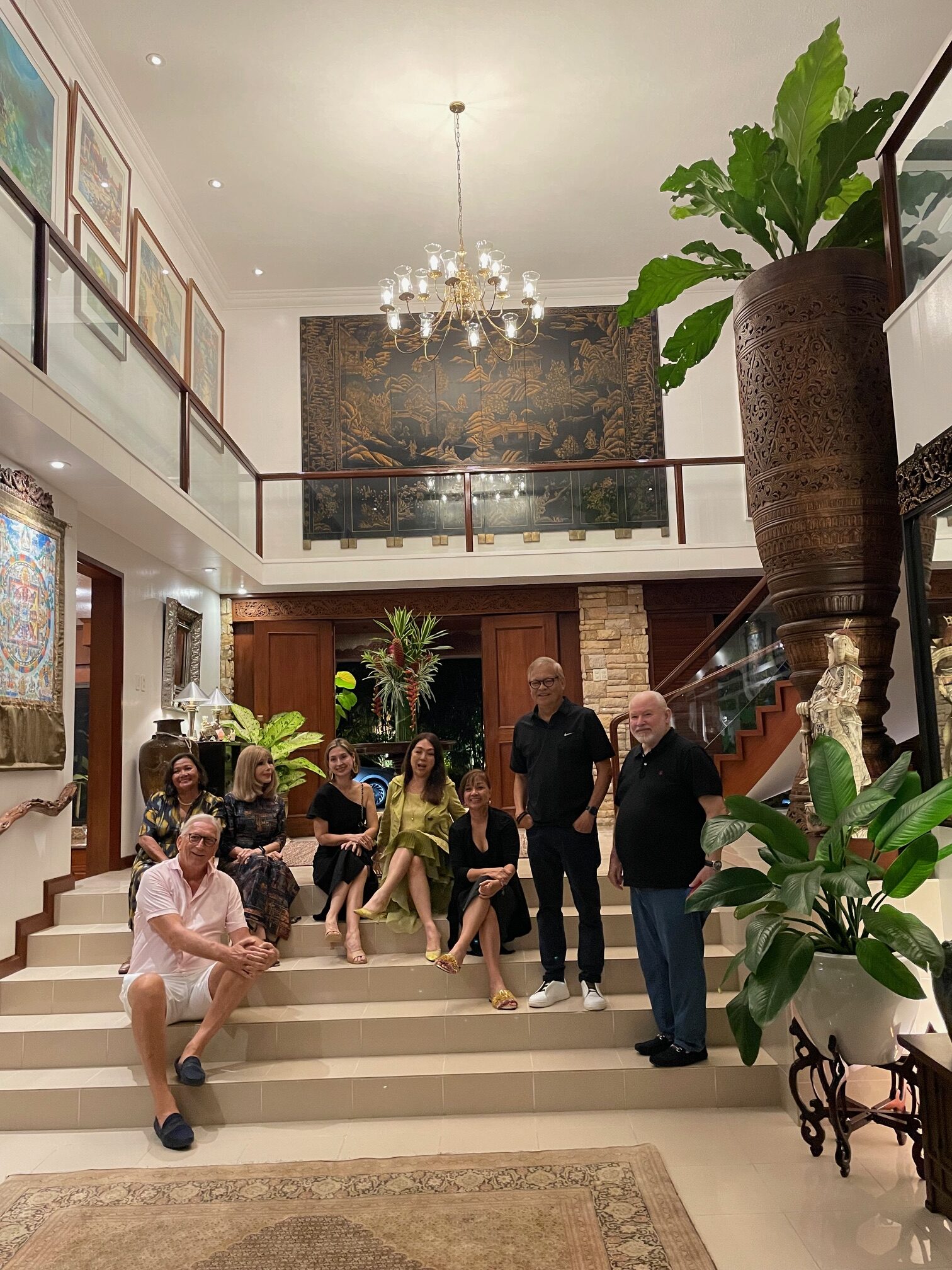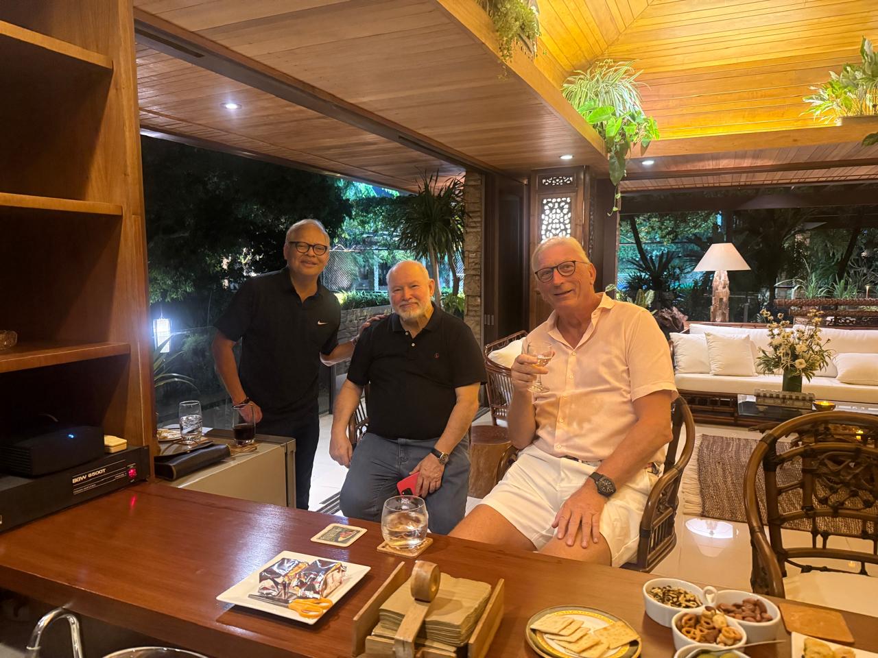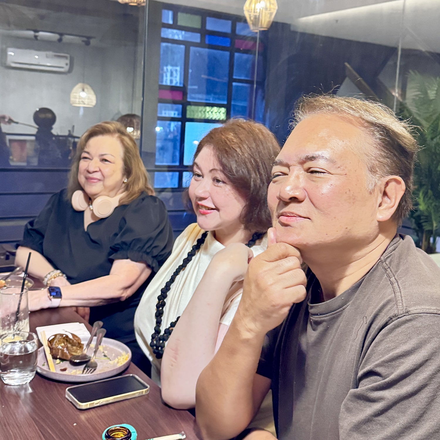 The dinner was in honor of Gerry Montanus and Pamela Manuel, briefly back in town and warmly welcomed. “I think we brought the quake,” Pamela quipped, laughing as she recalled the timing of their arrival. Gerry—imposingly tall at 6 feet 7—had leapt out of bed when the tremors began. Their own home, a stilts-supported creation by architect James Jao, had responded with a particularly theatrical sway, although there was no major damage except perhaps for half the water in their infinity pool.