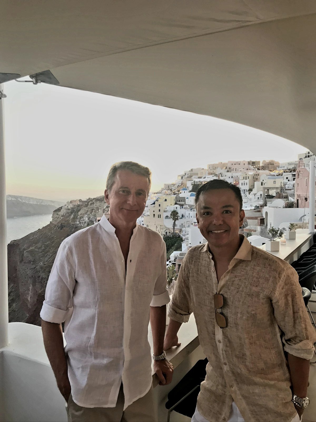 Simon Miles and Jun Escario in Santorini where the couple picked up a lot of their inspiration