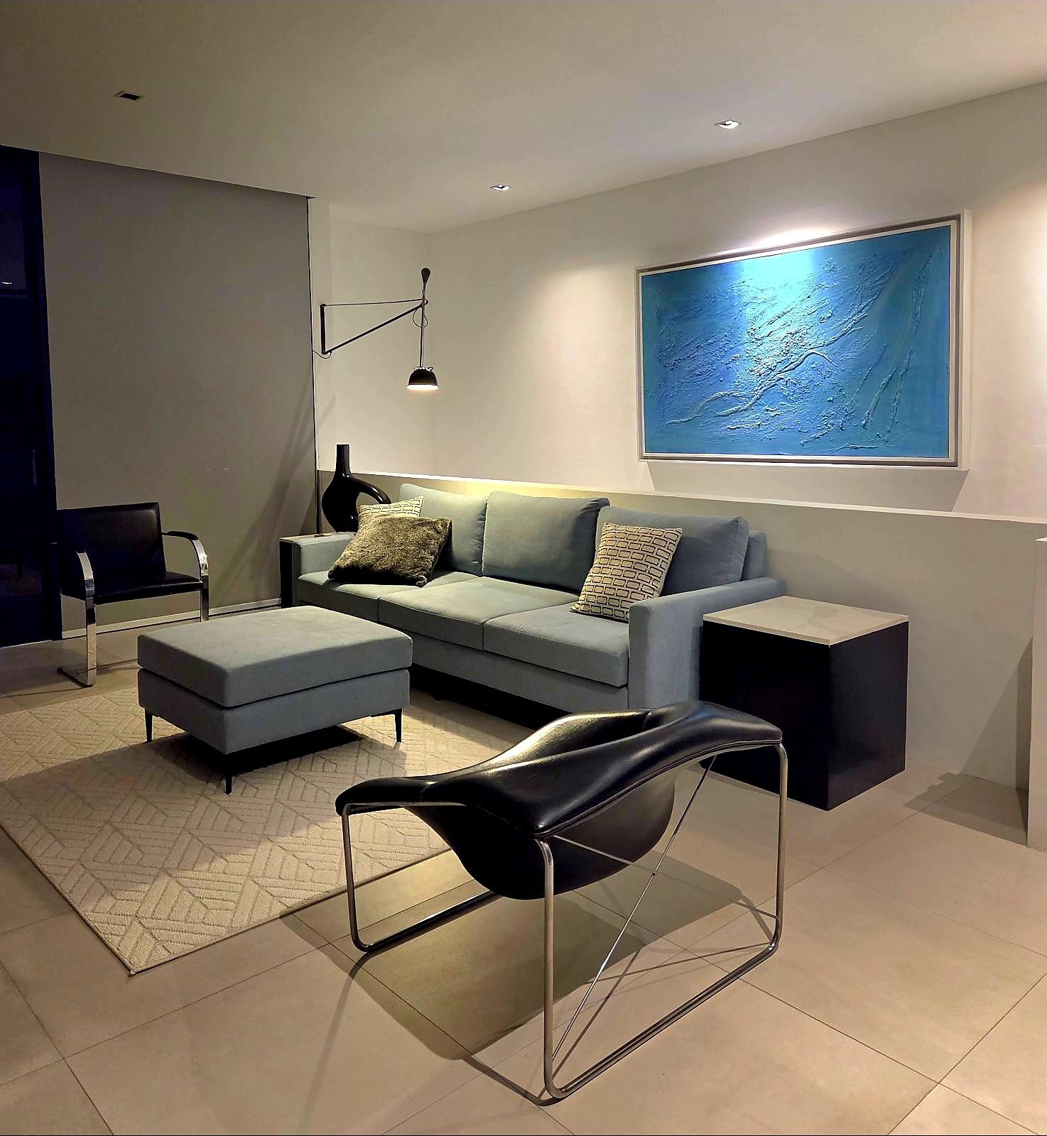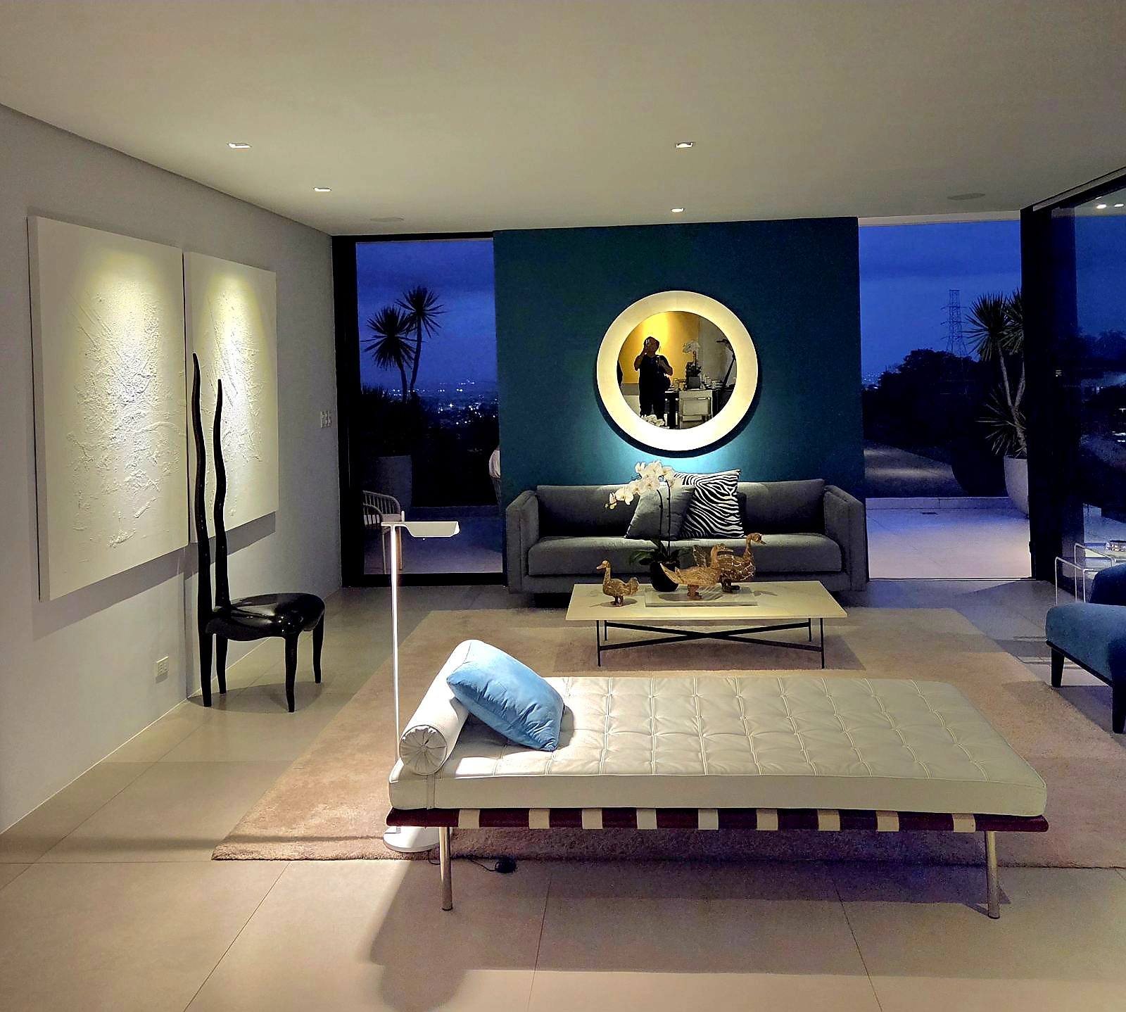 R&Y Agousti Sylvie chair and the Barcelona day bed are the prime design elements that characterize the principle of stark simplicity in this living room.