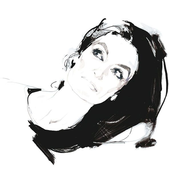 When embarking on a portrait, David Downton applies the same criteria as he does with fashion illustrations. The artist claims, “I am looking for beauty and a reductive line, trying to say as much as I can with as little fuss as possible.” The artistic quality that defines his work is purposely lacking in detail, slightly deconstructed, with lots of white space around and above the subject, and above all, the subject’s intense, sphinx-like gaze.