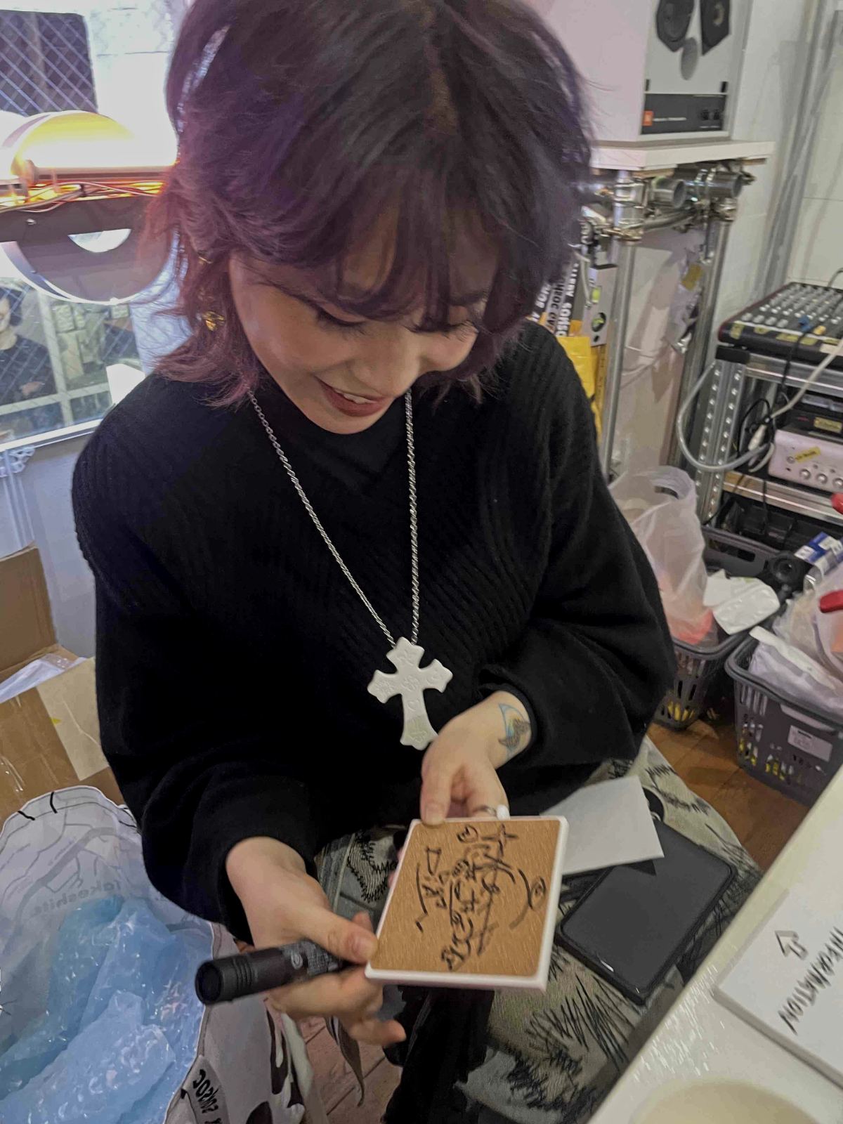 The artist Dian signing autographs at SomSoc Gallery in Tokyo